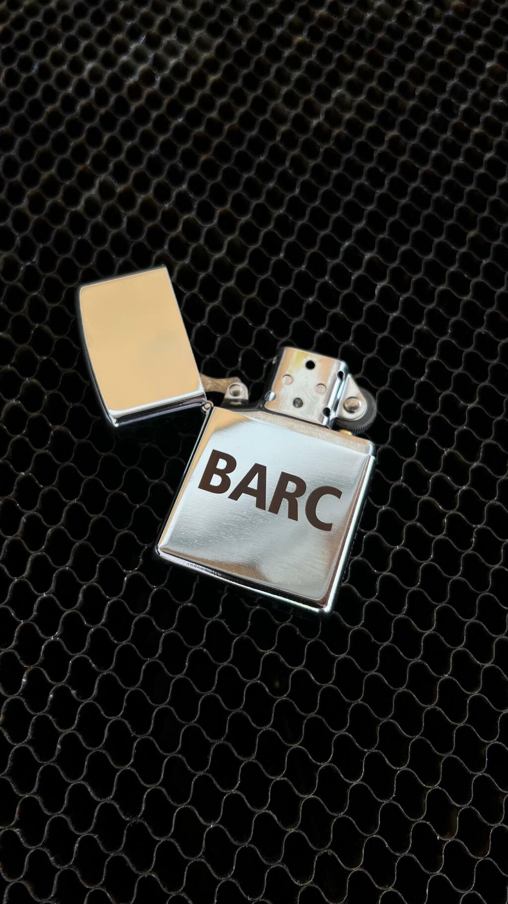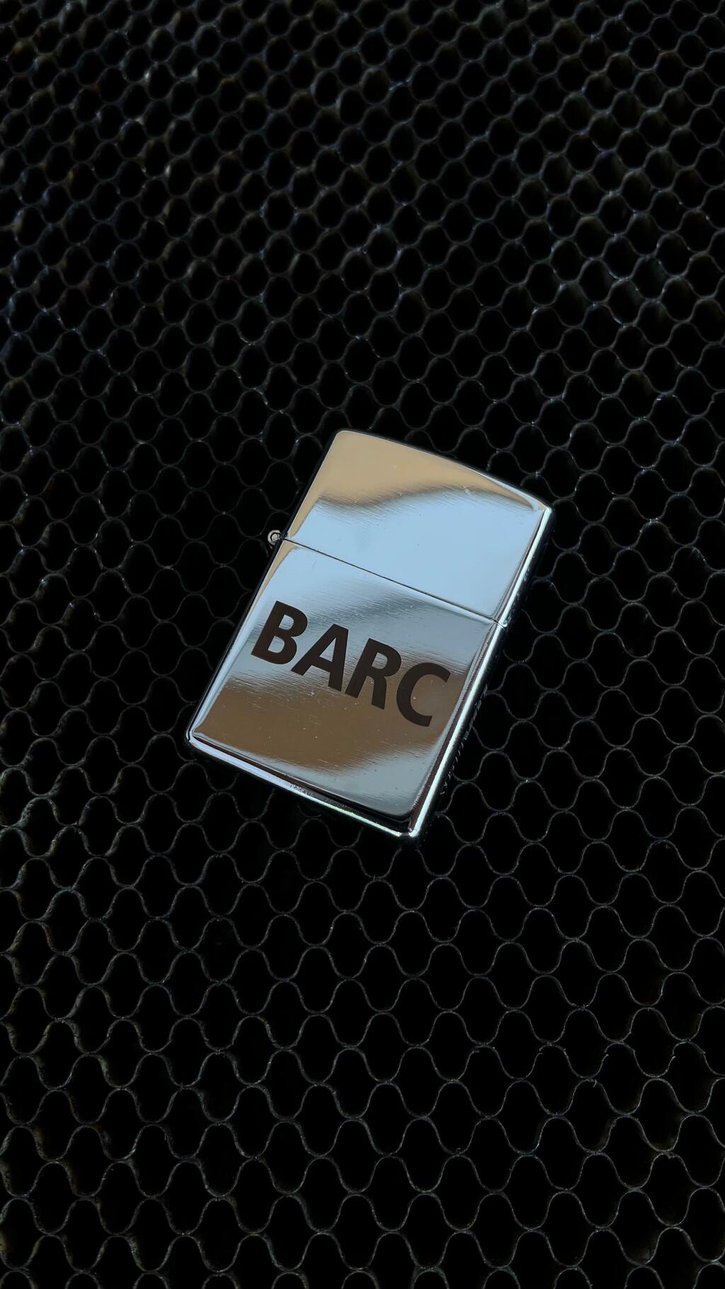 O isqueiro da Barc, com logo da Barc gravada num tom prateado, transforma um modelo básico em uma peça de luxo, destacando-se como um dos acabamentos sofisticados da marca.