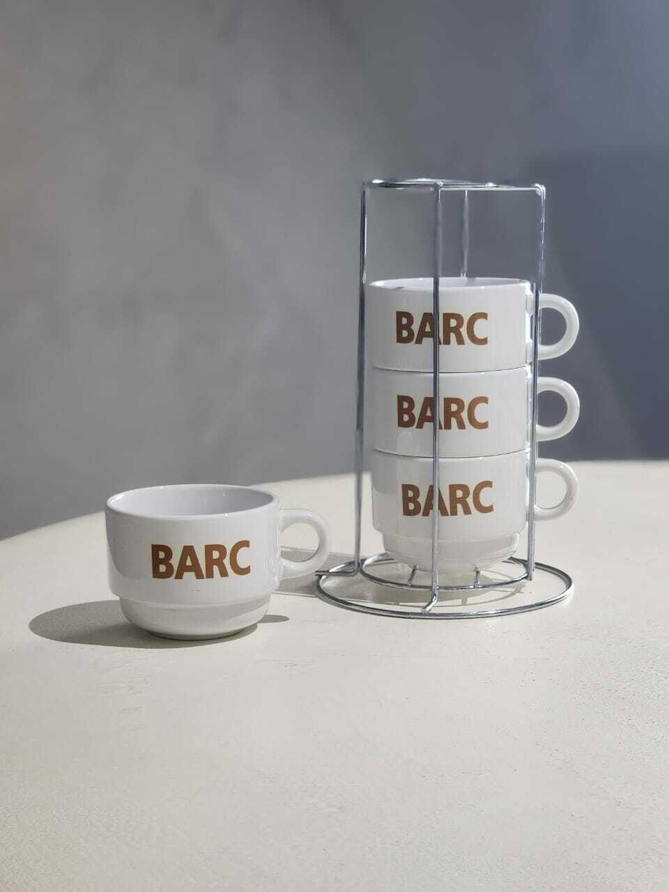 Conjunto de 4 xícaras, acompanha uma estrutura prática que sustenta todas as xícaras, deixando mais organizado.